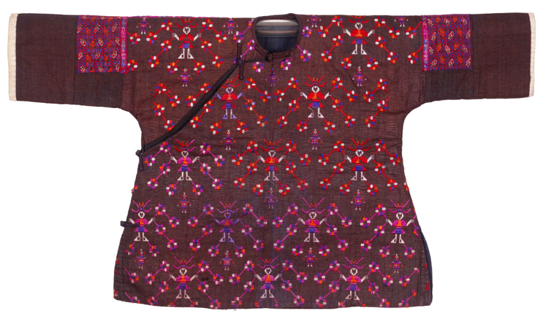 There are many decorative figures in Miao costumes in Qiandongnan Miao and Dong Autonomous Prefecture of Guizhou. The Miao people’s figure-patterned children’s tops in Ping Huang, Guizhou Province are also called "little people’s clothes" or "children’s clothes" locally. The garment body is embroidered with two kinds of ancestor patterns, large and small, which represent the Miao ancestors who protect the family’s peace.