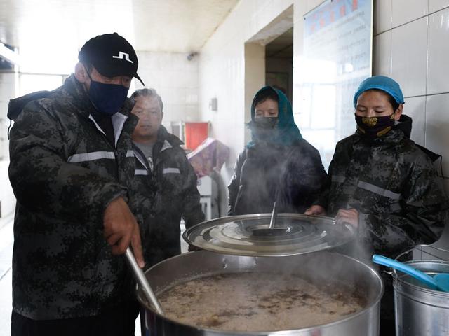 On May 22nd, at the disaster relief resettlement site of boarding school in Huanghe Township, maduo county, teachers were making meat porridge for students. Xinhua News Agency reporter Zhang Long photo